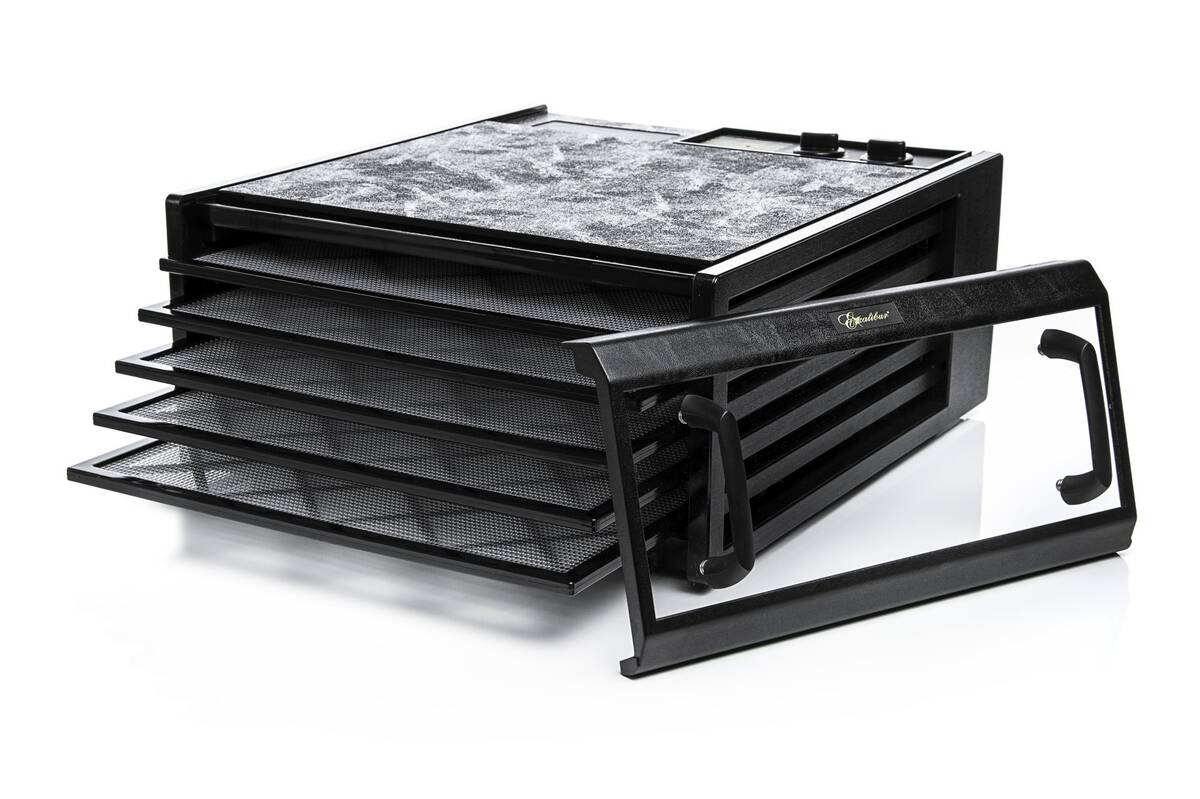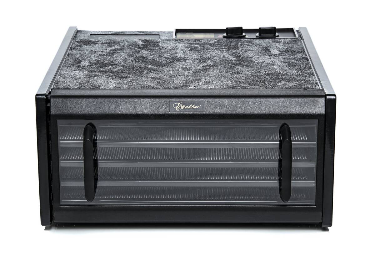 Dehidrator Excalibur sa površinom sušenja od 0,63 m2 (crni, 5 tacni, tajmer, providna vrata).